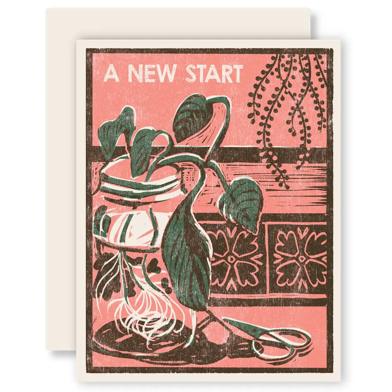 Letterpress printed from hand-carved woodblocks Printed on 100% post-consumer recycled paper Cards measure 4.25 x 5.5" when folded and are blank inside. Each card is packaged with a matching envelope and cello sleeve.